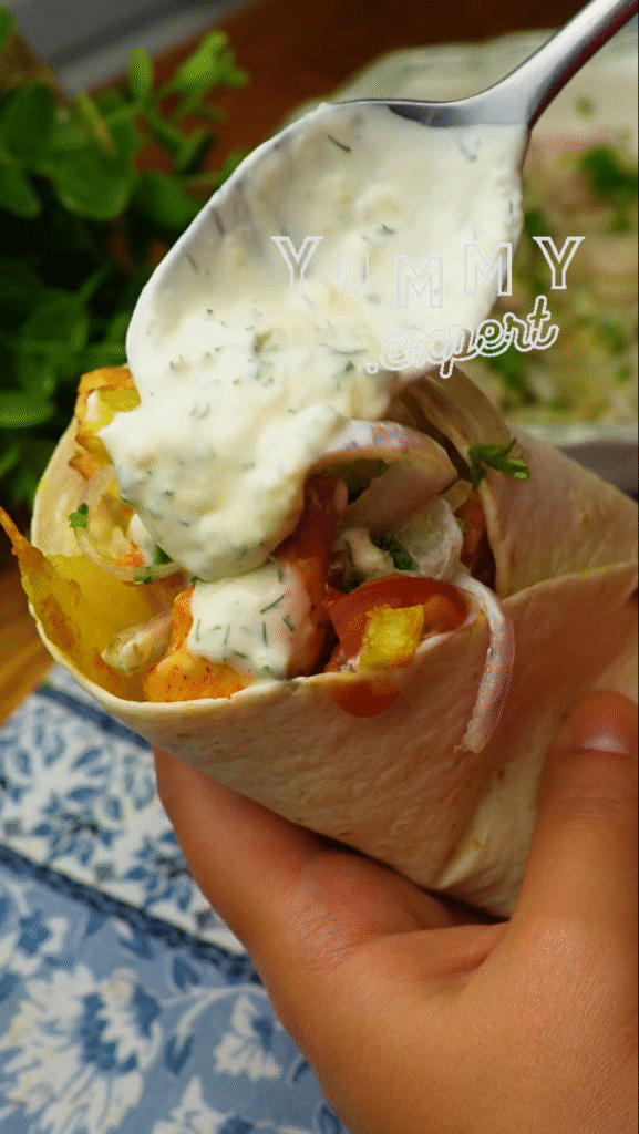 A quick and flavorful shawarma recipe with baked chicken, crispy potatoes, and creamy garlic sauce — perfect for a satisfying meal at home.